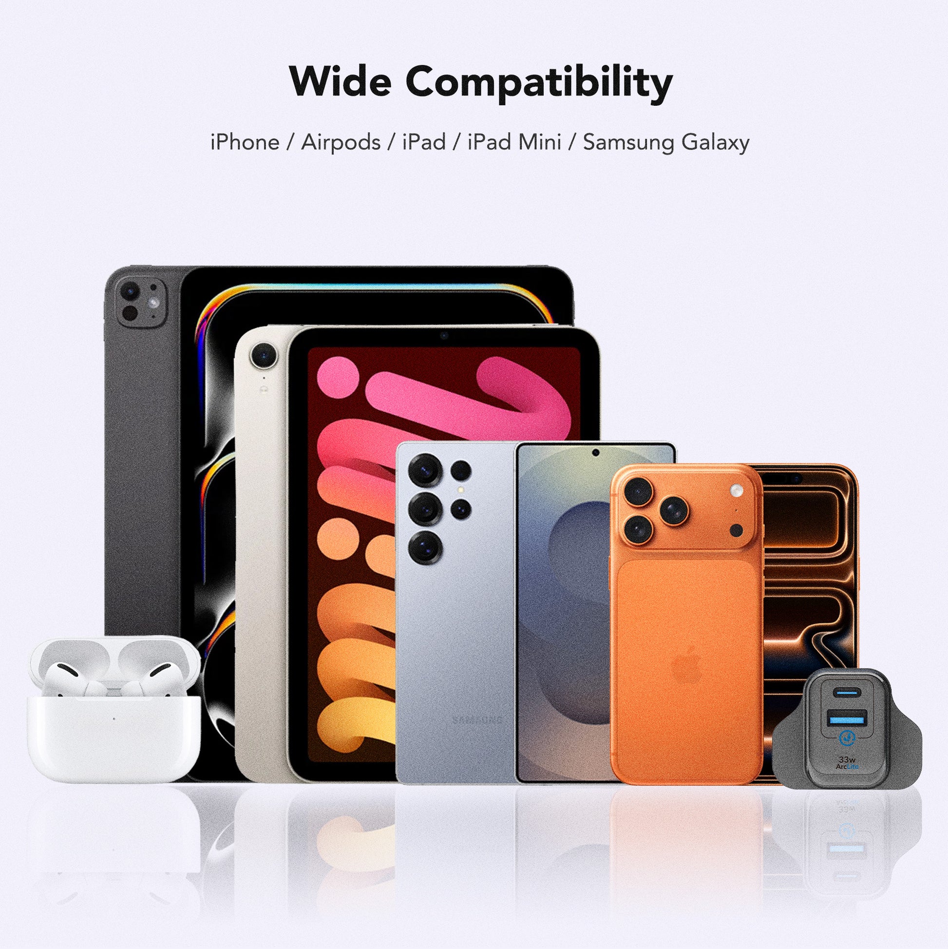 Supports smartphones, tablets, earbuds & more