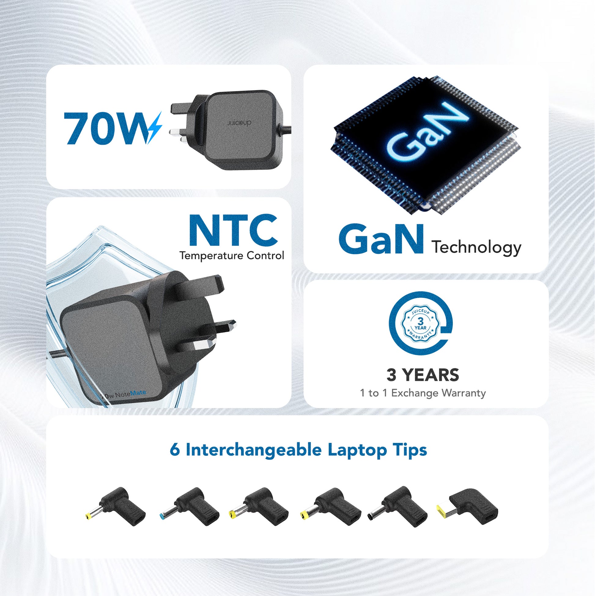 Juice Up NoteMate 70W Universal Notebook Adapter is built for users who need reliability, flexibility, and convenience.
